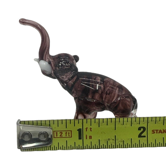 Glass Elephant Figurine Hand Blown Art Glass Trunk Up Decor Statue