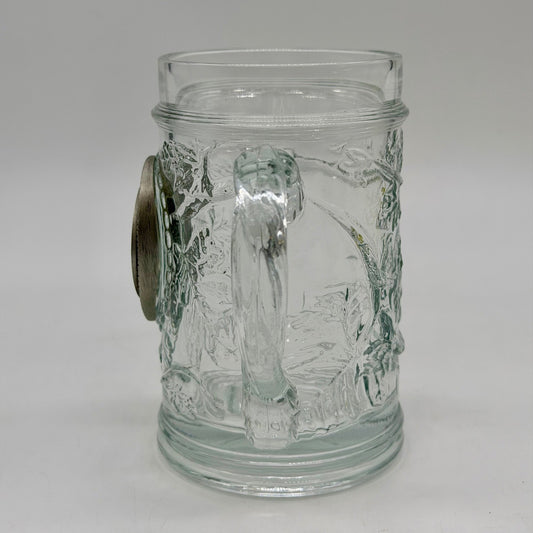 United States Mint Treasury Glass Beer Stein Embossed Grapevine Pewter Medallion