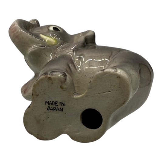 Vintage Hand Painted Elephant Figurine – Gray with Pink Ears, Made in Japan
