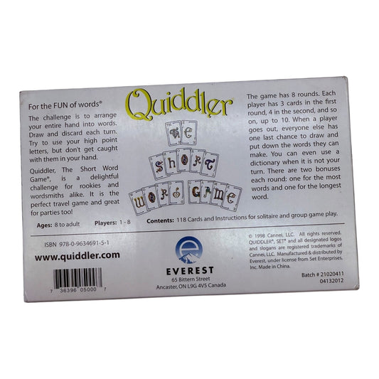 SET Enterprises QUIDDLER Card Game "The Short Word Game" 1998
